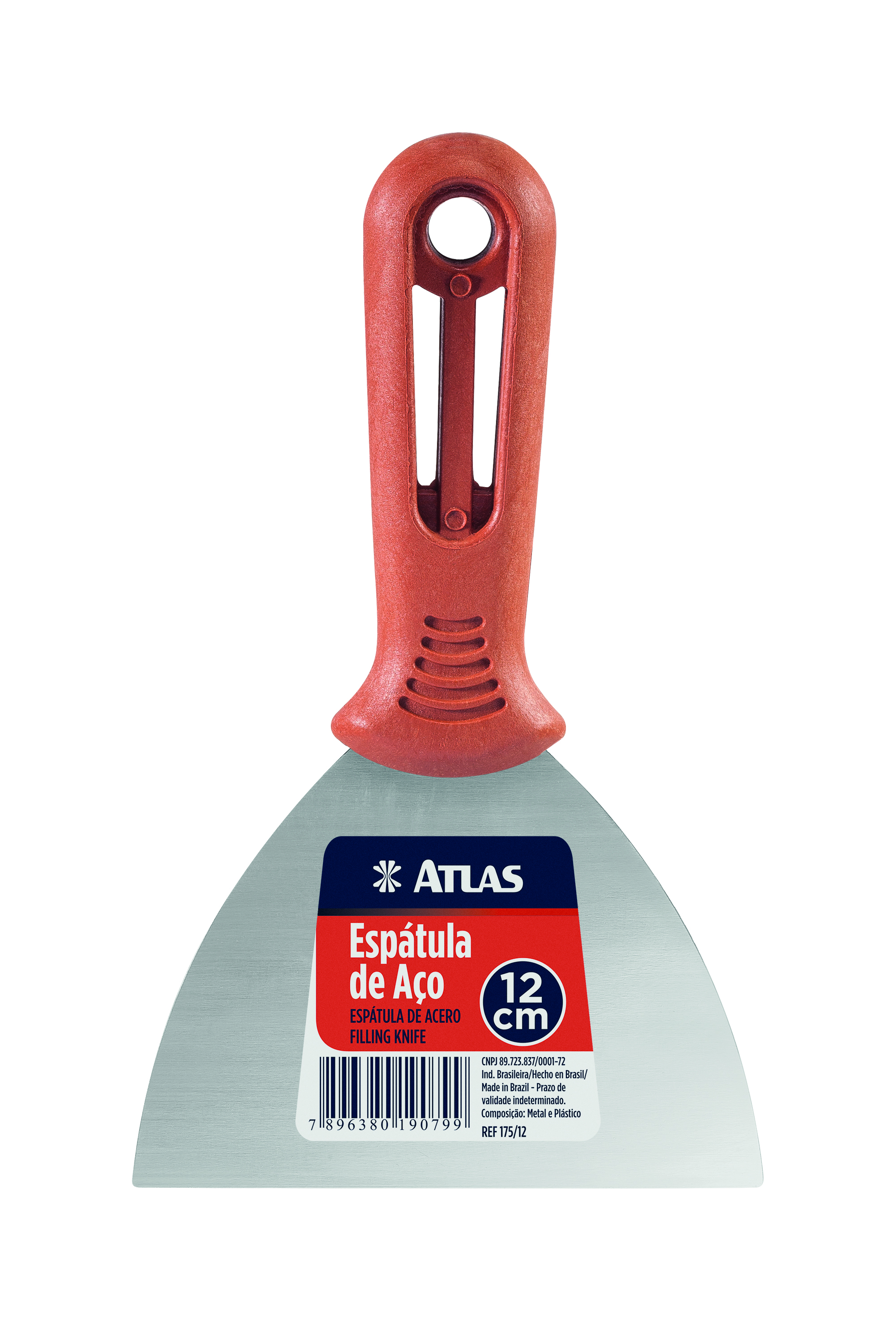 Espátula ideal para aplicação de massas e raspagem de tinta e papel de parede.