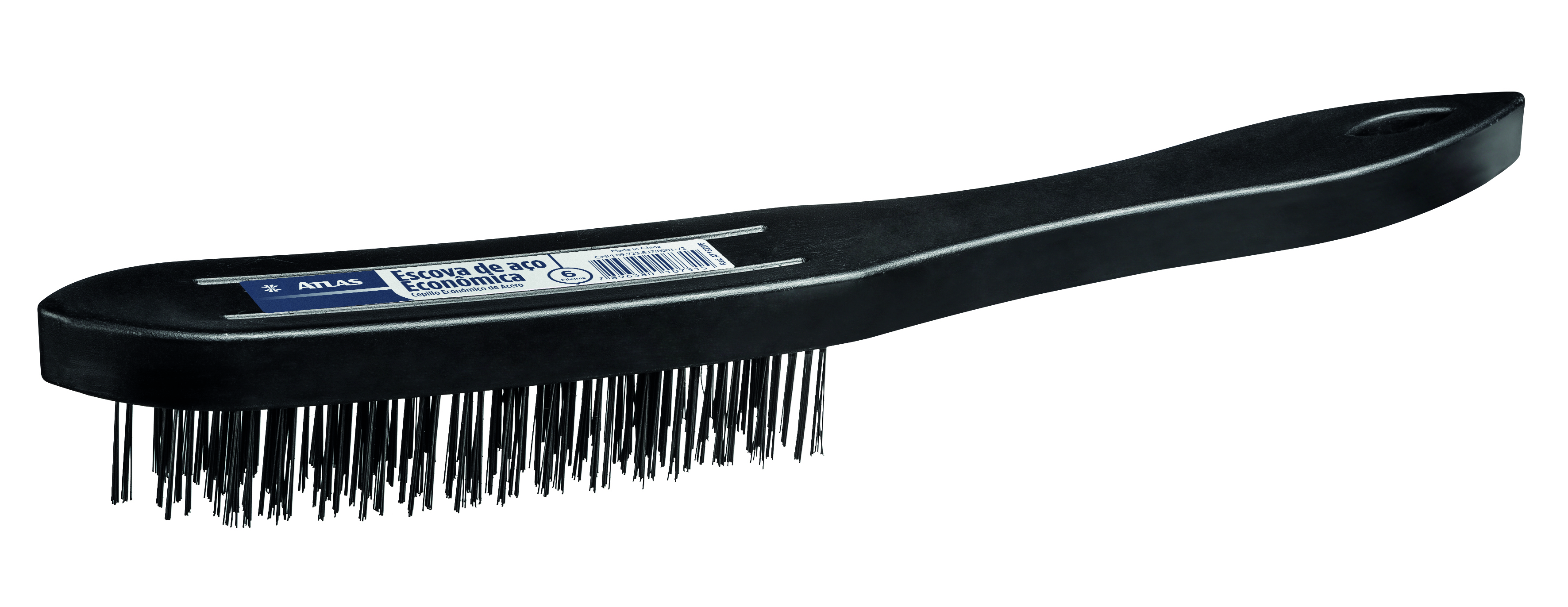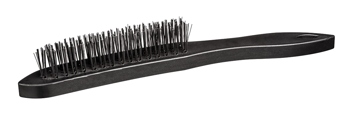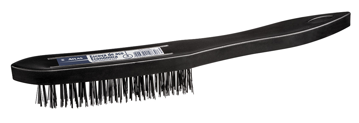 Escova de aço econômica 3 fileiras. As cerdas em aço para o trabalho pesado de lixar, remover tintas e preparar superfícies, enquanto seu cabo plástico com maior durabilidade. Ideal para limpeza em geral e textura escovado.