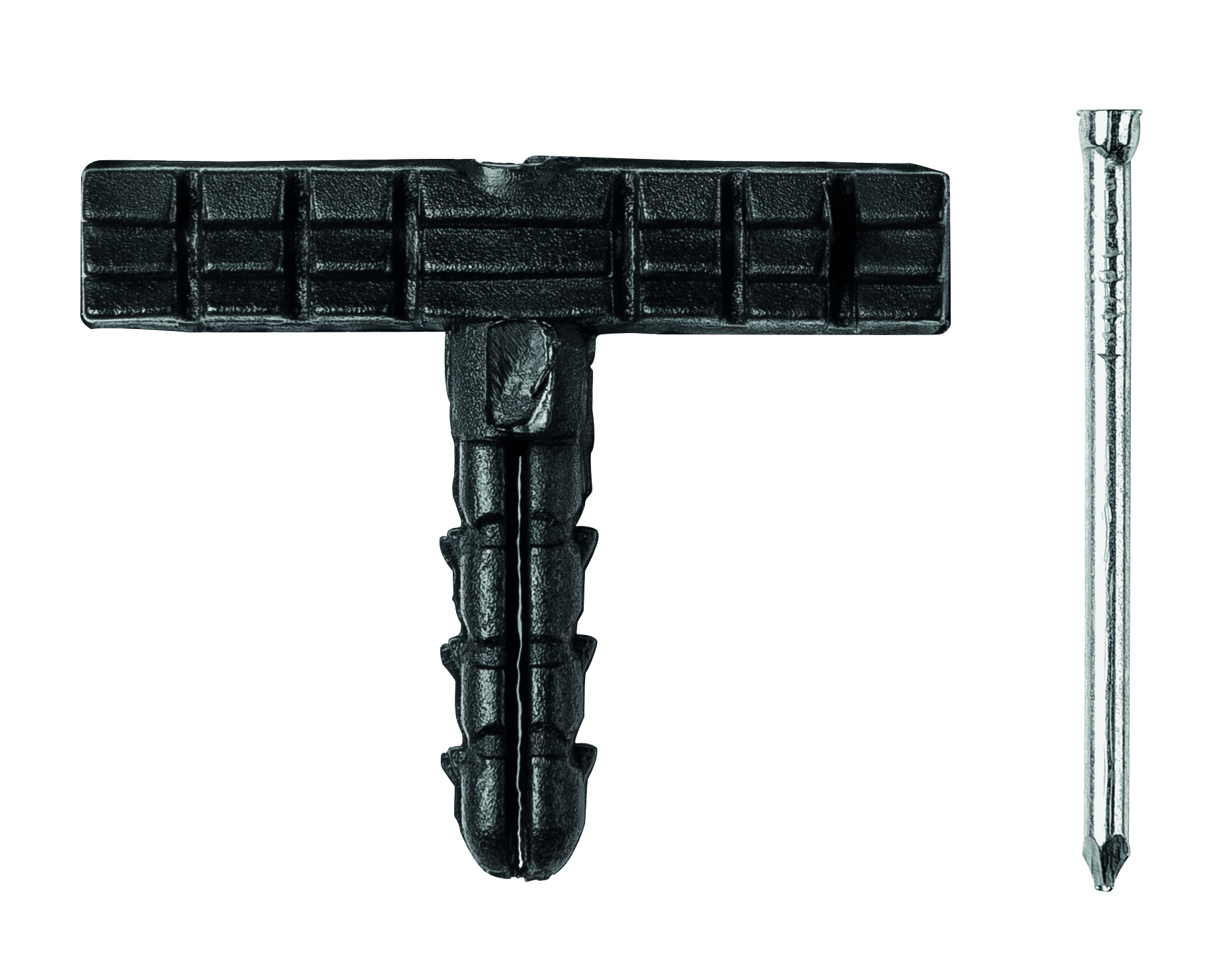 Bucha t para fixação de perfis - alizares, rodapés, roda-tetos, roda-meios e guarnições