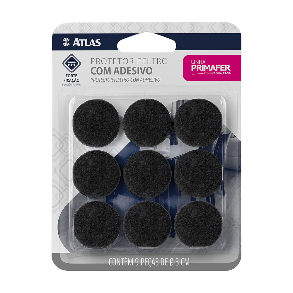 Protetor de feltro adesivo com fita dupla-face. Desliza com facilidade. Ideal para pisos de madeira, parquês, laminados e vinílicos. É aplicado abaixo dos móveis, evitando arranhões no piso e amenizando ruídos.