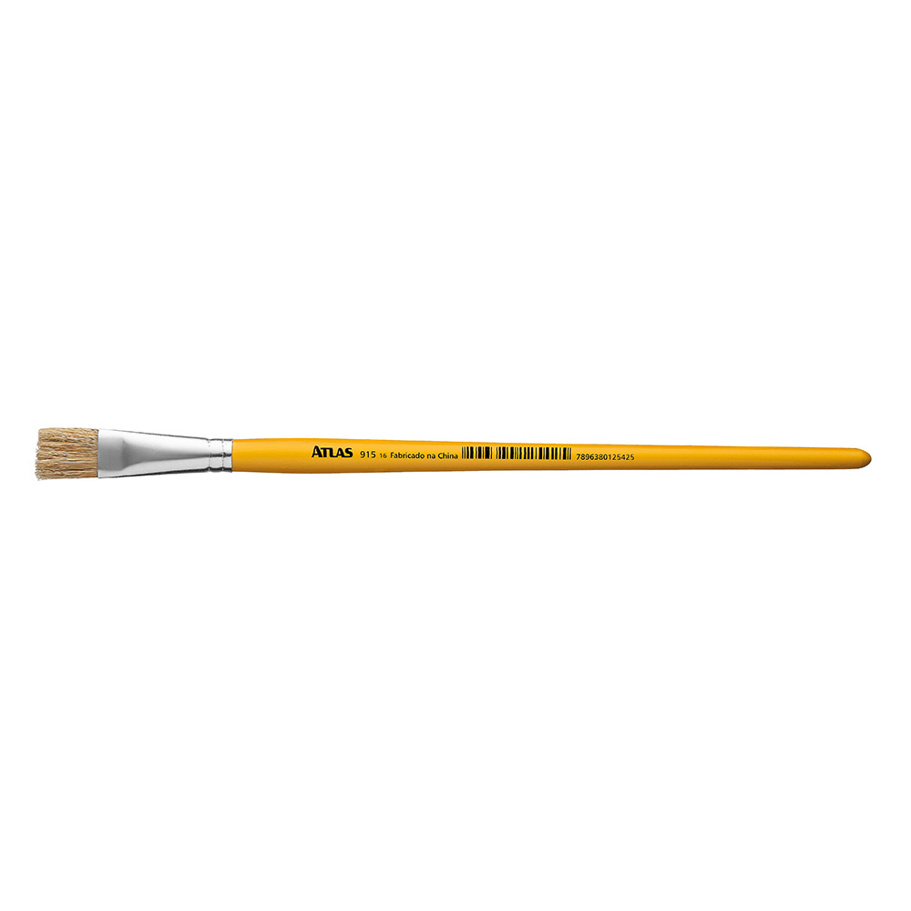 Pincel achatado - cerdas brancas e cabo amarelo. Pincel indicado para pintura de cerâmica, tinta acrílica, tinta óleo, tintas para tecido.