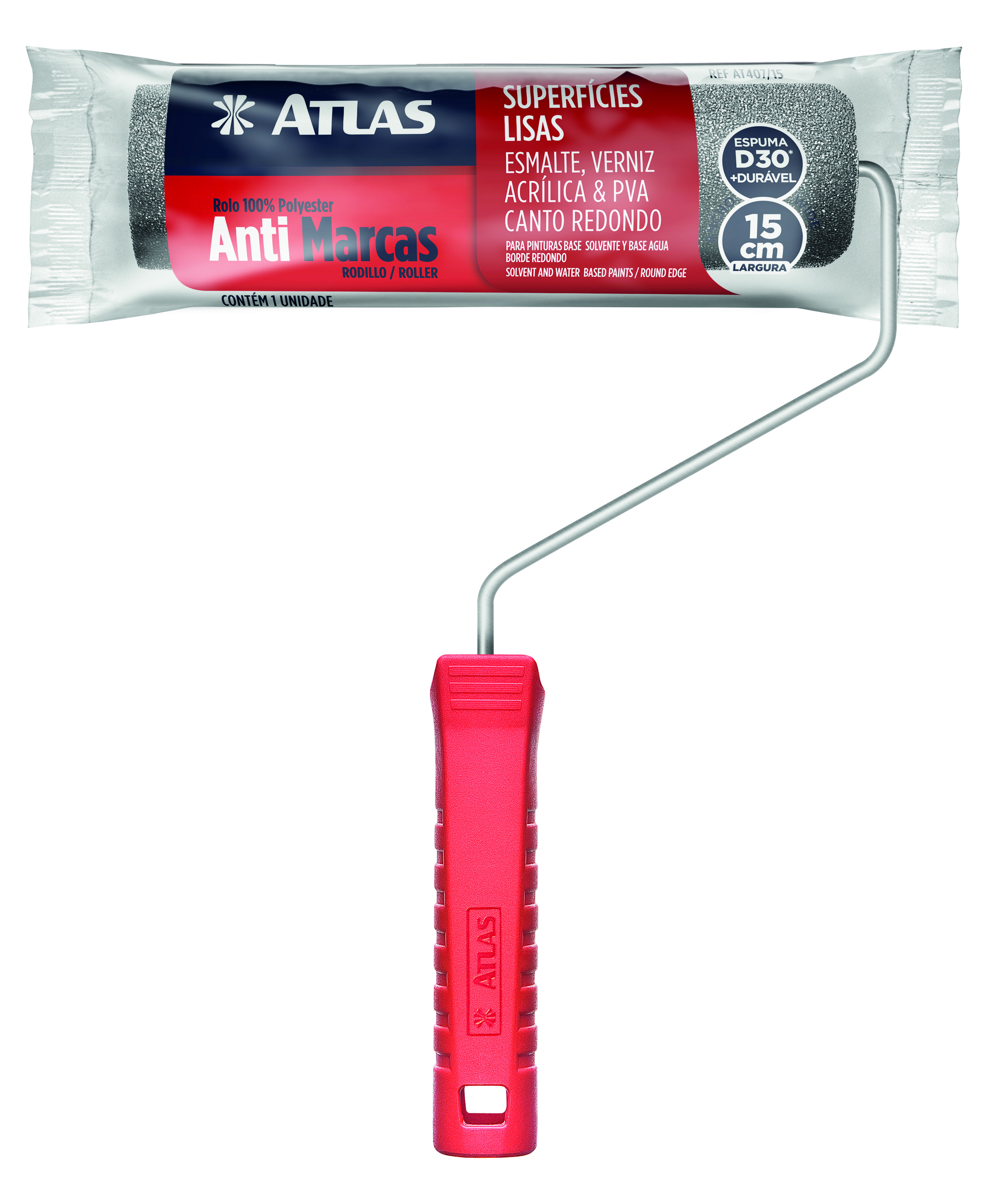 Rolo de espuma 100% poliéster e com densidade 30 (kg/m³) com 23cm e cantos arredondados. Resistentes a solventes. Indicado para superfícies lisas. Os cantos arredondados fazem com que as marcas deixadas pelo rolo se reduzam drasticamente. Ideal para tintas esmalte, verniz, acrílica (pva). Produto resistente a solventes minerais, não utilizar com thinner.